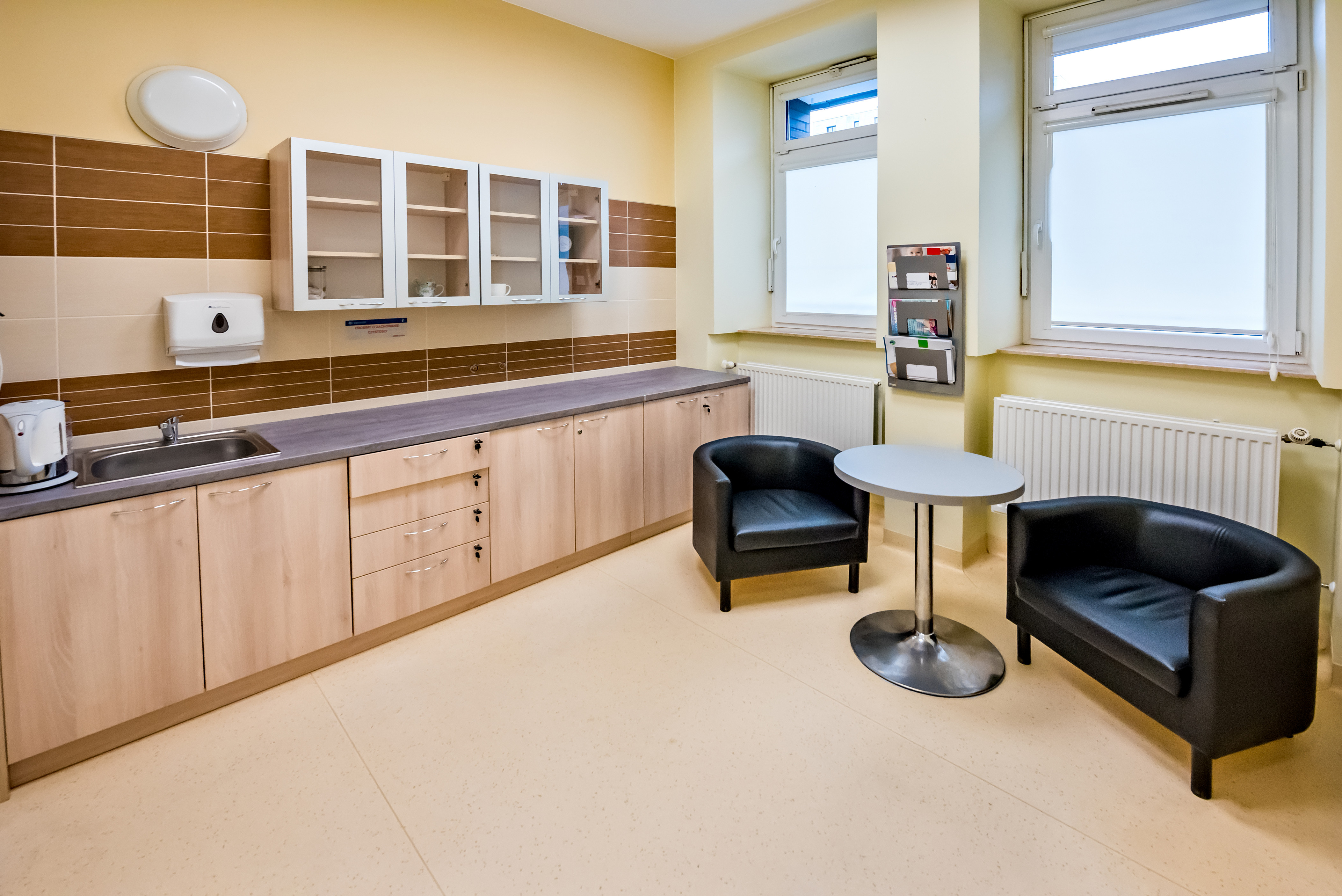 Po operacji Pacjentka przewożona jest do sali pooperacyjnej. Tam już czeka na nią jej dziecko – pobyt na Sali nie zakłóca kontaktu matki z dzieckiem. W tym pomaga bardzo aktywnie personel. Pobyt w sali pooperacyjnej trwa ok. 6 godzin – w tym czasie znieczulenie przestaje działać i można stanąć na nogach. Tu opiekę przejmuje przeszkolony zespół położnych, dzięki którym Pacjentka trafi na wskazany odcinek Oddziału Położnictwa, gdzie będzie miała możliwość sprawowania samodzielnej opieki nad dzieckiem. Jeśli będzie to zbyt trudne z powodu dolegliwości pooperacyjnych w opiece zawsze pomoże personel Oddziału.