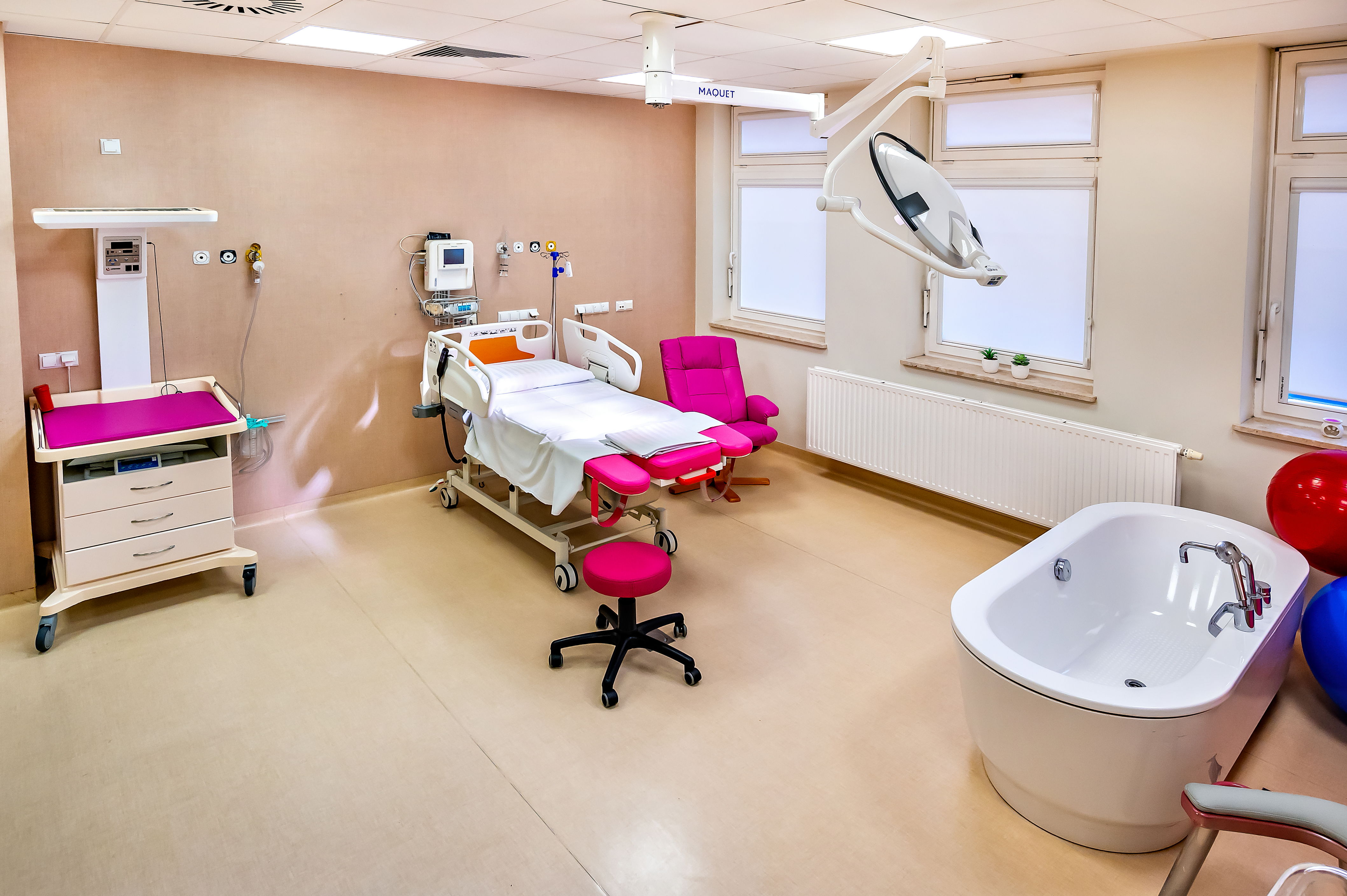Blok Porodowy Szpitala Specjalistycznego im. Św. Rodziny dysponuje 9 nowoczesnymi i komfortowymi salami porodowymi, z których każda jest w pełni dostosowana do potrzeb Pacjentek i wyposażona w odpowiedni sprzęt ułatwiający poród, m.in. piłki, worki saco, materace, nowoczesne łóżka do pozycji wertykalnych.